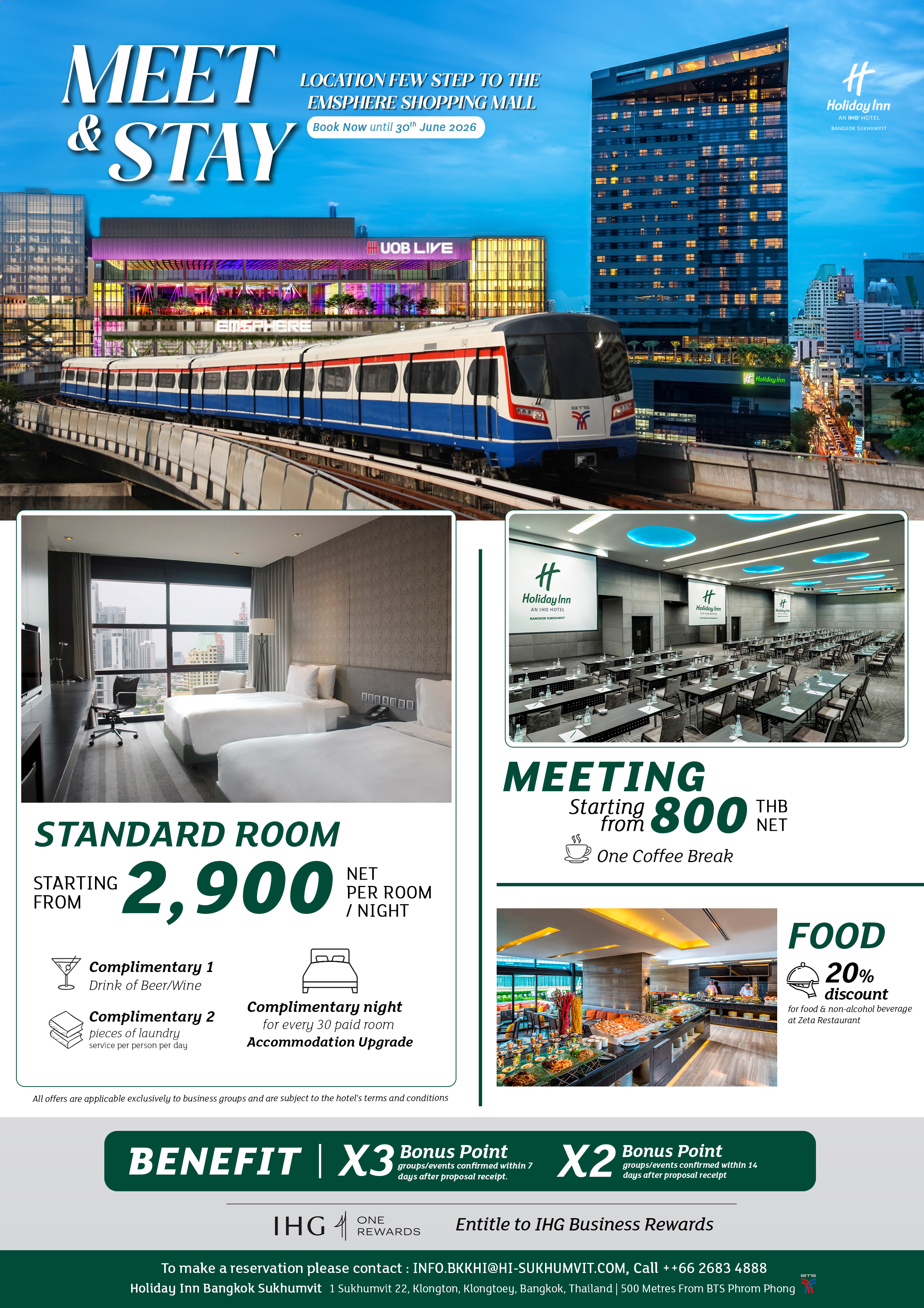 Discover our exclusive Meet & Stay package, perfectly designed for business groups seeking convenience and value in the heart of Sukhumvit. Located just a few steps from EmSphere Shopping Mall, Holiday Inn Bangkok Sukhumvit offers flexible meeting facilities and comfortable accommodation for your next corporate event.